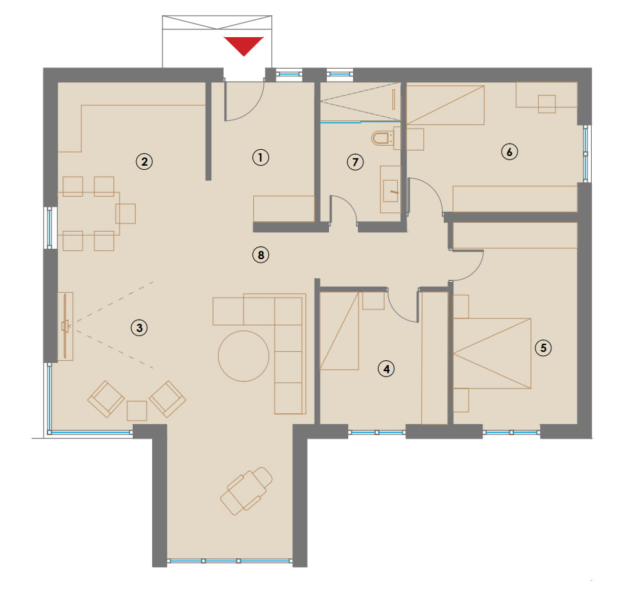 Unser zukunftssicheres Familienhaus bietet alles, was eine vierköpfige Familie braucht - vor allem dank der durchdachten Grundrisse. Das klassische Satteldach mit den schönen Gesimsen an der Traufseite strahlt Gemütlichkeit aus.