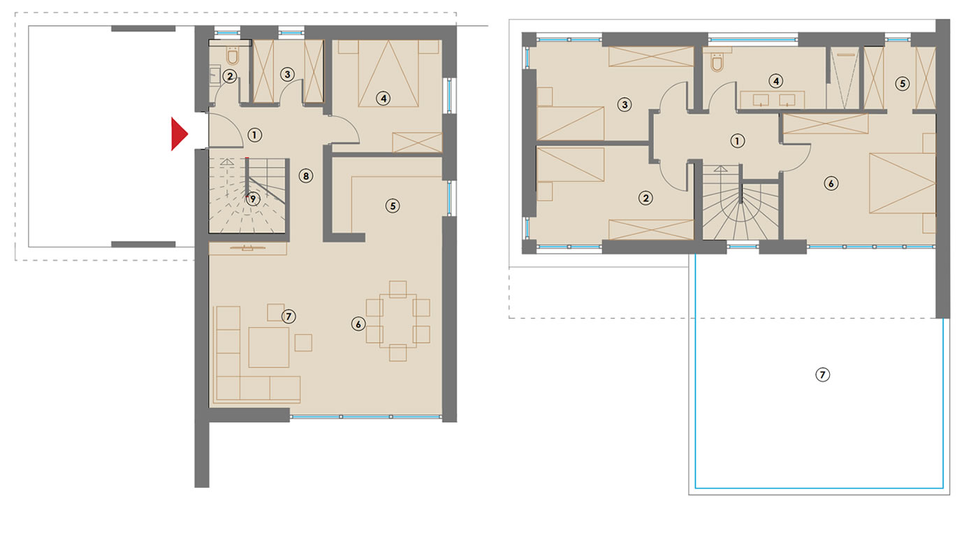 Bereits wenn Sie das Family 3 betreten, erwartet Sie ein modernes Wohnambiente. Die großzügige Diele erscheint durch Glaselemente an der Haustür hell und freundlich. Von der Diele aus erreichen Sie den Hauswirtschaftsraum sowie das praktische Duschbad. Zudem ermöglicht die Diele den Zugang zum 30 Quadratmeter großen Wohn- und Essbereich. Die bodentiefen Fenster erfüllen den Raum mit natürlichem Tageslicht. Die Küche bietet ausreichend Platz für die Zubereitung von leckeren Speisen für die ganze Familie.