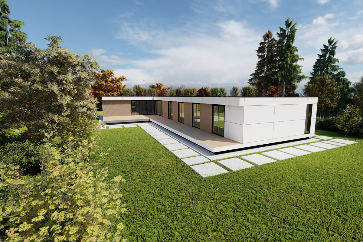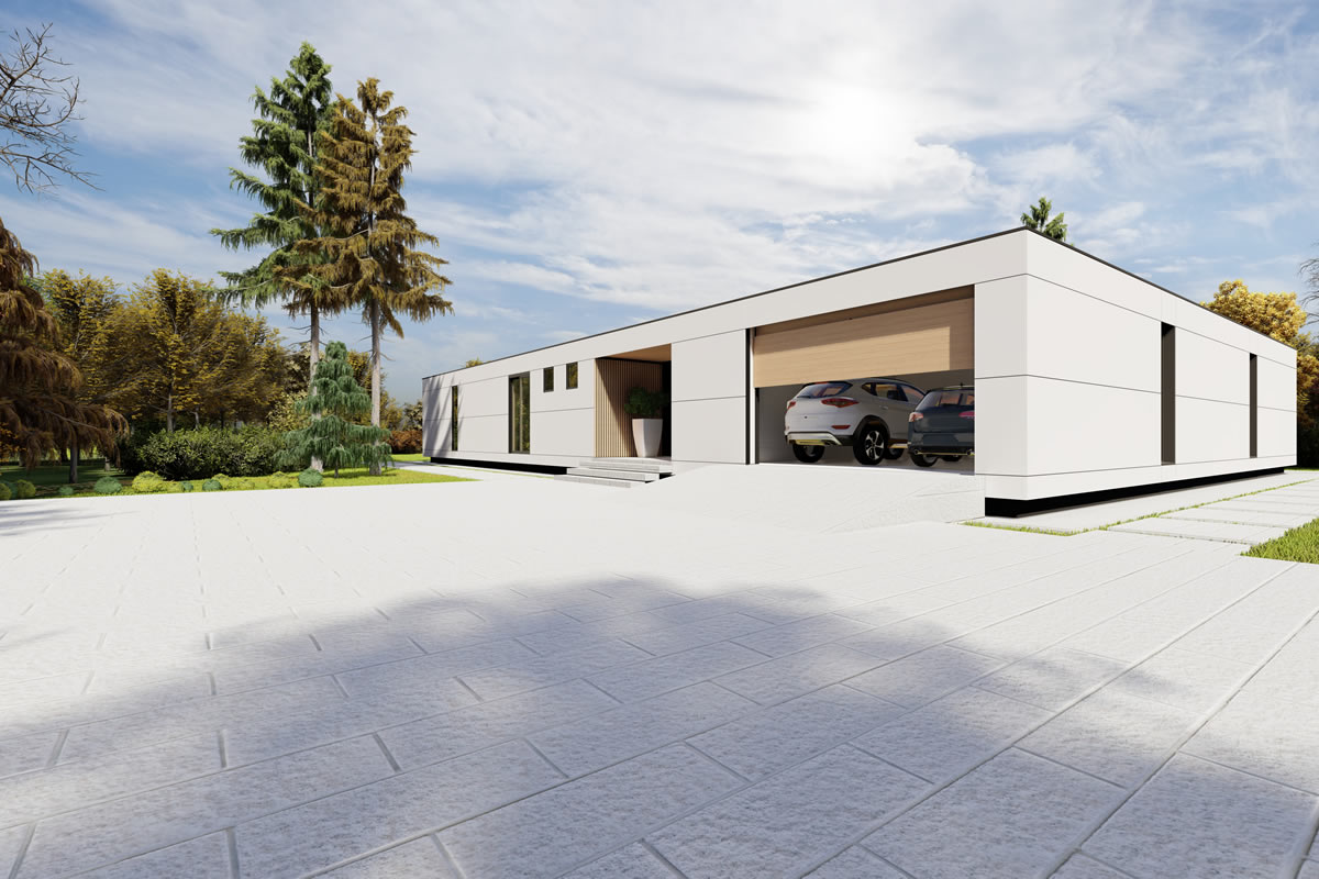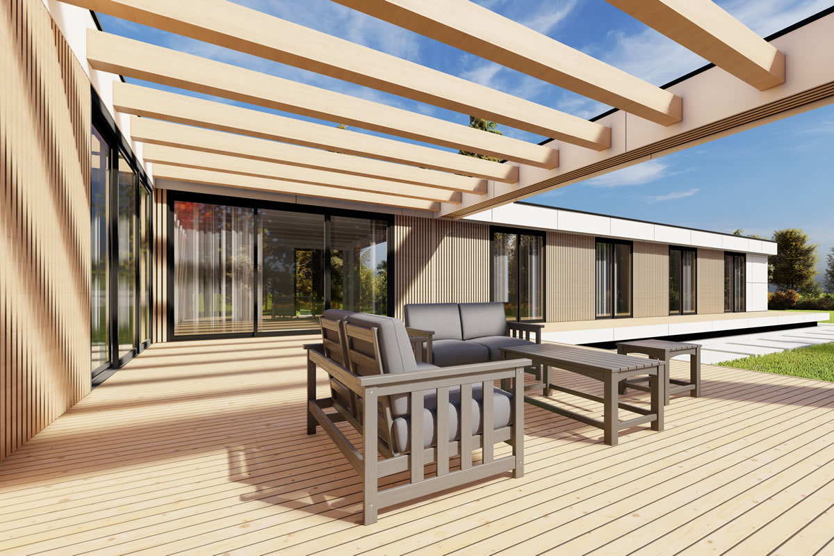 Dass ein Winkelhaus immer ein bisschen schöner und faszinierender wirkt, liegt wohl an der großzügig geschnittenen Sonnenterrasse, welche durch den intelligenten Winkelbau nicht nur vor Wind und Wetter schützt, sondern gleichzeitig auch den Blick auf die Landschaft öffnet. Wohn- und Essbereich bilden den Mittelpunkt, des durch große Fenster und kleine Details bestechenden Familienhauses. Der Zugang zur Terrasse lädt zum Entspannen im Garten ein, sodass dieser Grundriss keine Wünsche offen lässt.